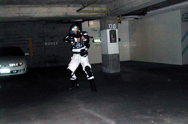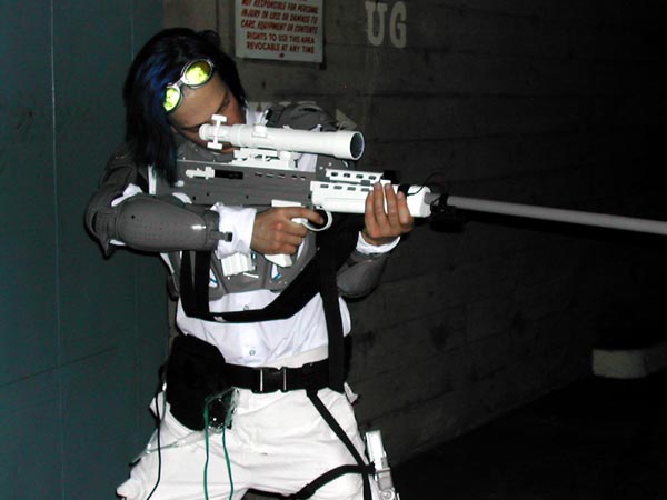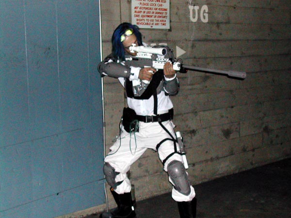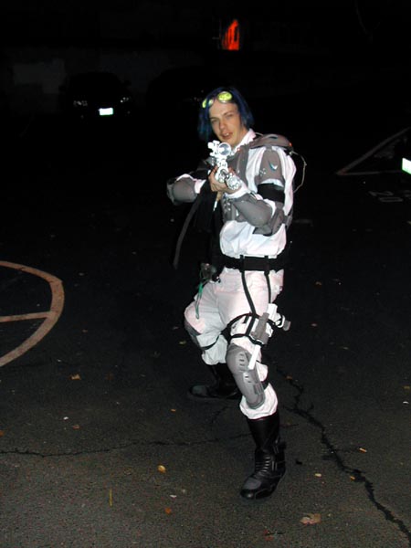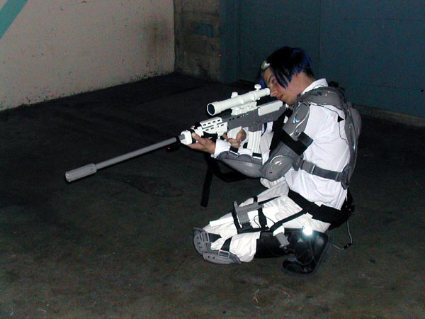 My favourite costumes in sci-fi film and television have always been the ones that involve futuristic armour - Boba Fett, Captain Power and his team, the guy from Superforce, and so on. I also wanted to make something that would be relatively recognizable, but that I would be unlikely to see anyone else dressed as. I decided on the Ghost, from StarCraft, because I like the concept of the character and the way it looks. I was also given a fair amount of leeway to make my own design decisions, because of the huge differences between the way the unit looks in the original RTS game and Nova's suit for the in-progress stealth action title. For those who haven't played StarCraft, the Ghost is a sort of sniper/recon unit. They carry personal cloaking devices to make themselves invisible, so they can sneak into the enemy bases and call down nuclear missile strikes. Being invisible also means they can take out unprotected enemy units easily with their rifle.