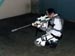 The armour and rifle had sustained a fair amount of "battle damage" at this point, but fortunately it's not obvious in this picture. I can see now why actual prop masters make about ten copies of everything that appears onscreen.